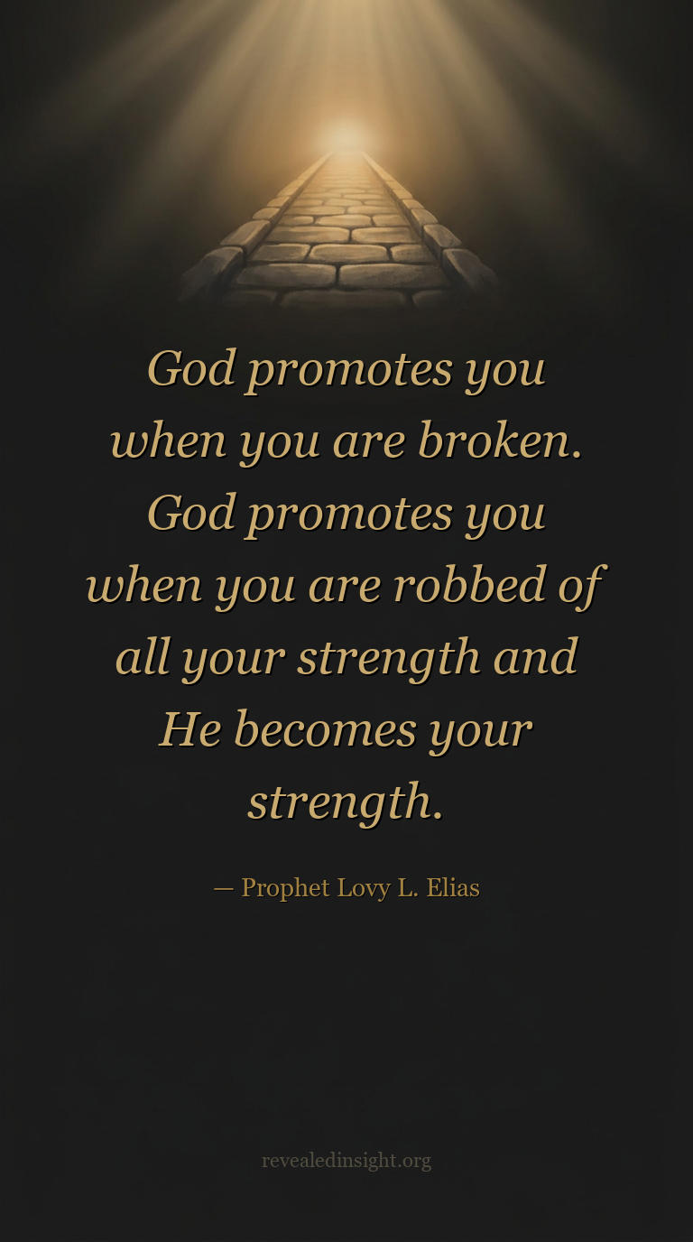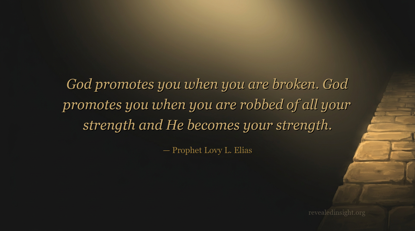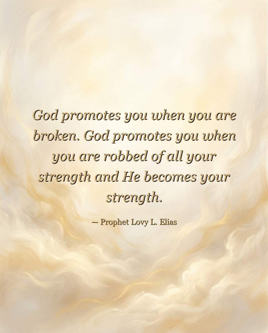 "God promotes you when you are broken. God promotes you when you are robbed of all your strength and He becomes your strength."