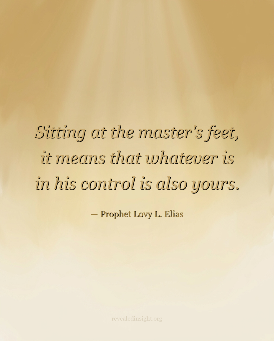 - To sit at the feet of the master means that whatever is in his control becomes accessible to you.