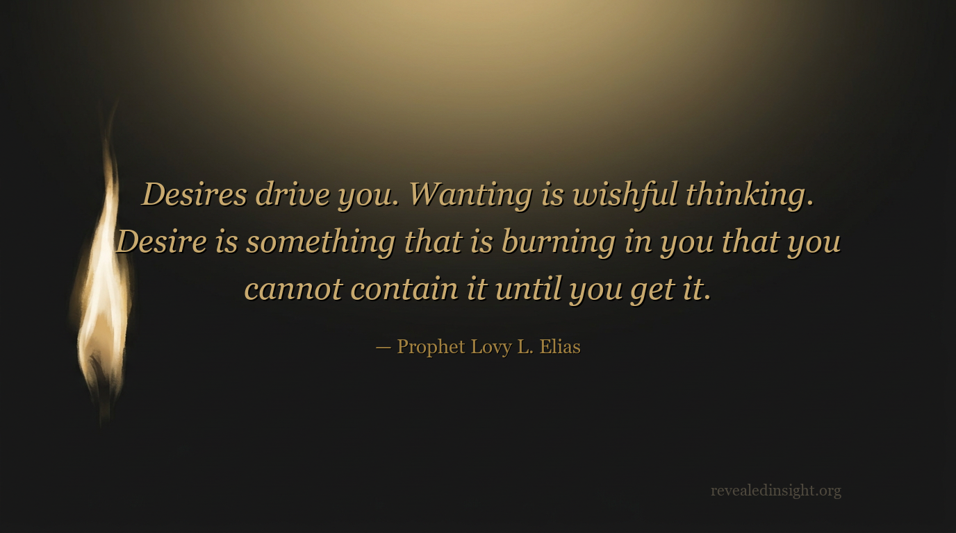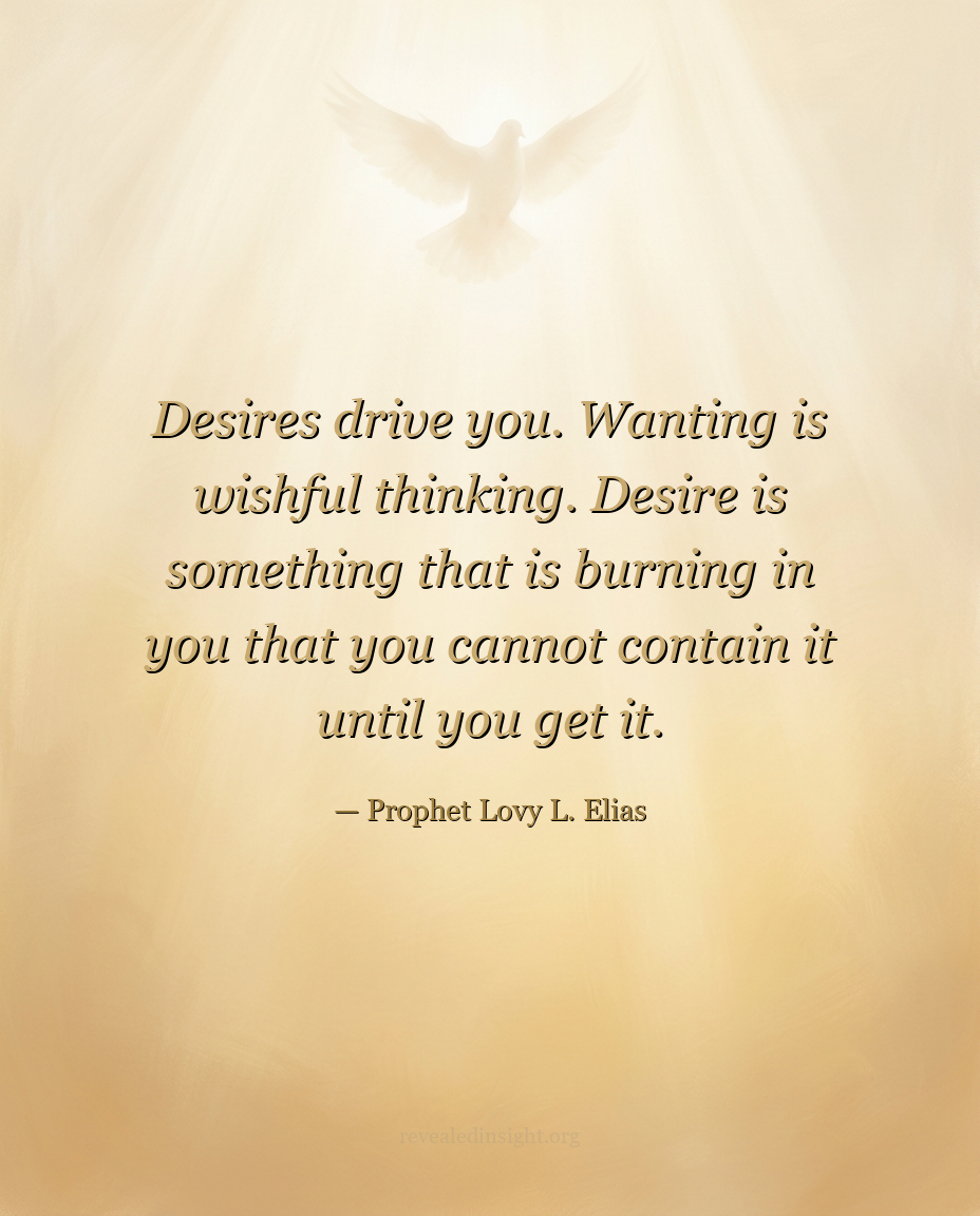 - Wanting is wishful thinking; desiring is a burning drive that cannot be contained until it is fulfilled, and desire is what positions you to receive from God.