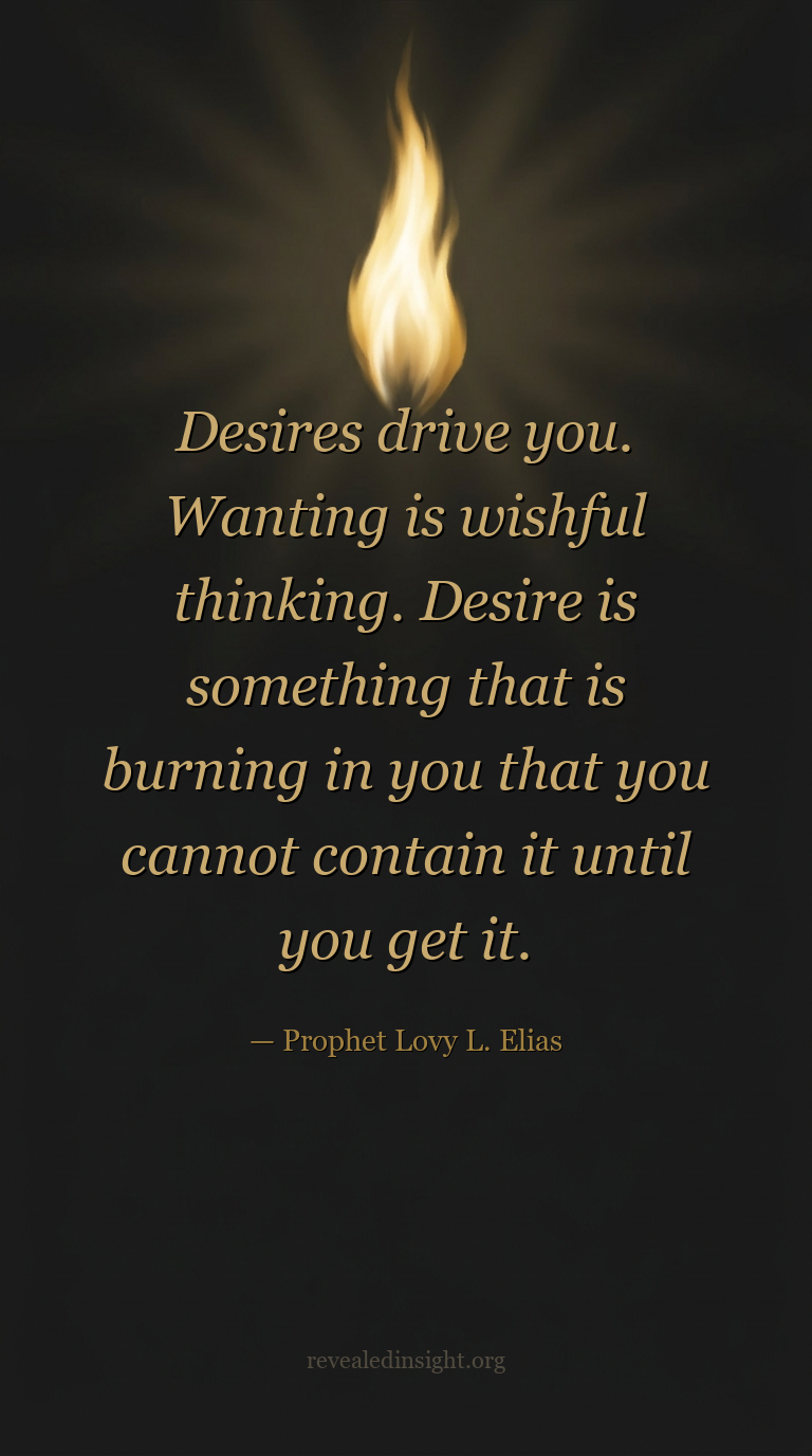 "Desires drive you. Wanting is wishful thinking. Desire is something that is burning in you that you cannot contain it until you get it."