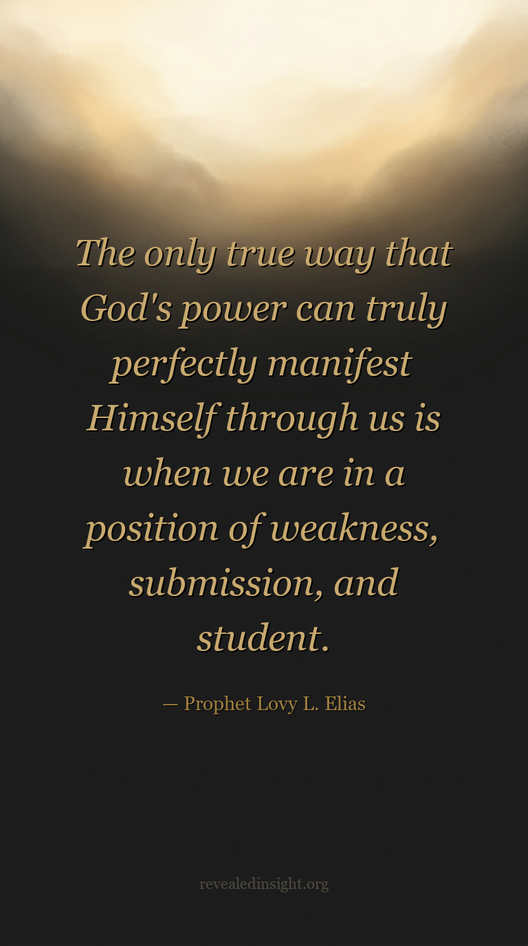 "The only true way that God's power can truly perfectly manifest Himself through us is when we are in a position of weakness, submission, and student."