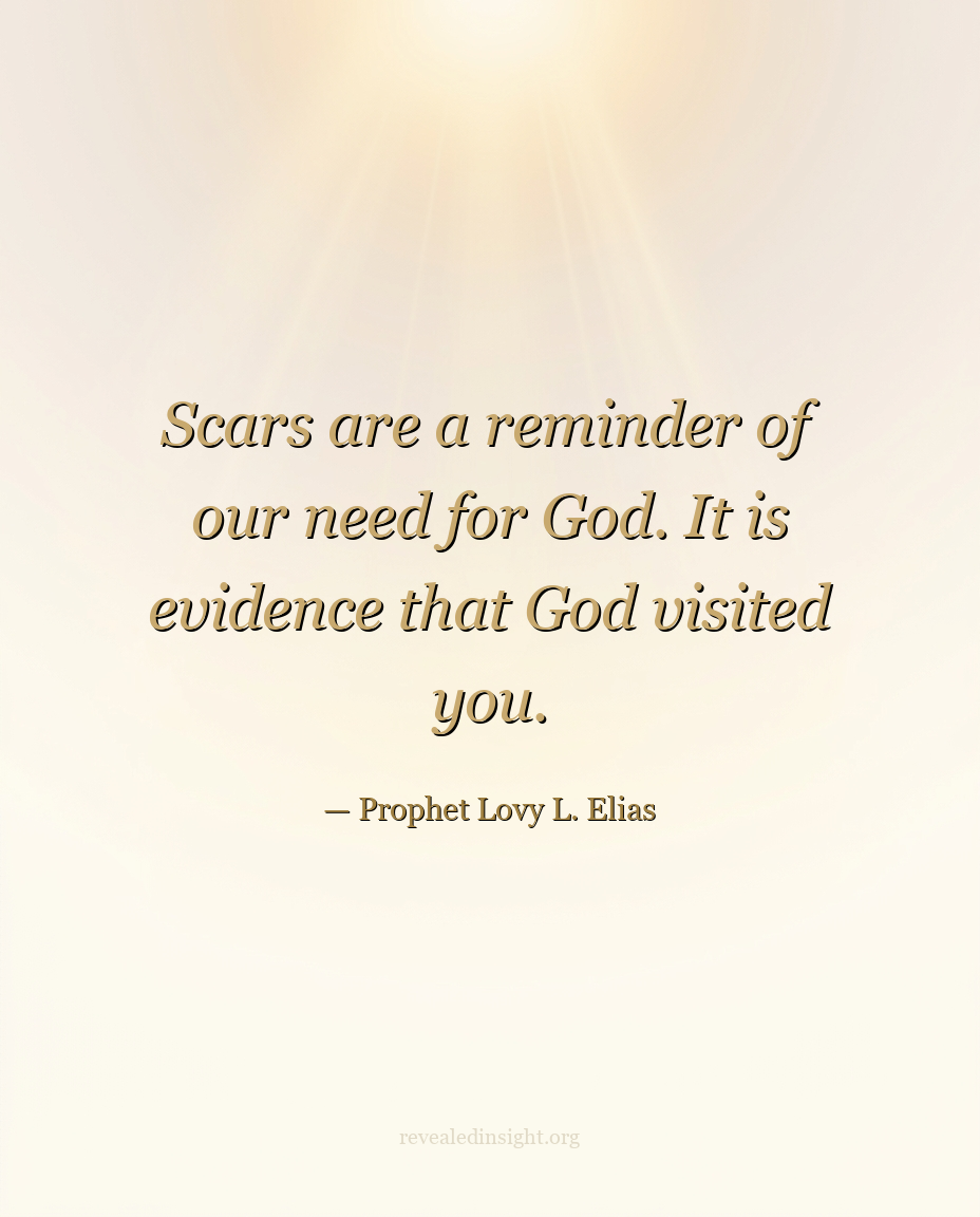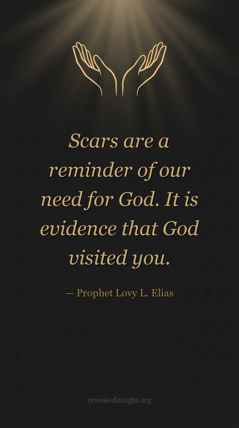 "Scars are a reminder of our need for God. It is evidence that God visited you."