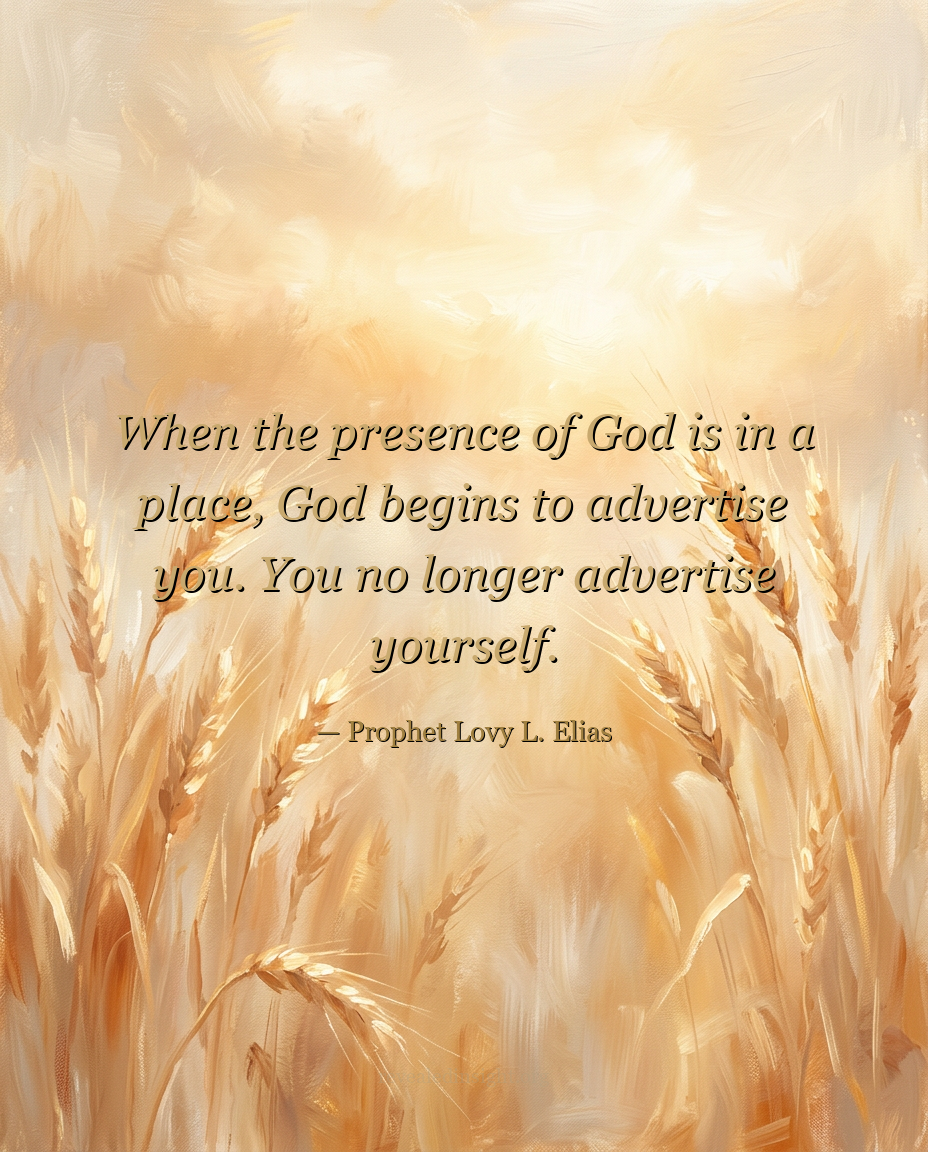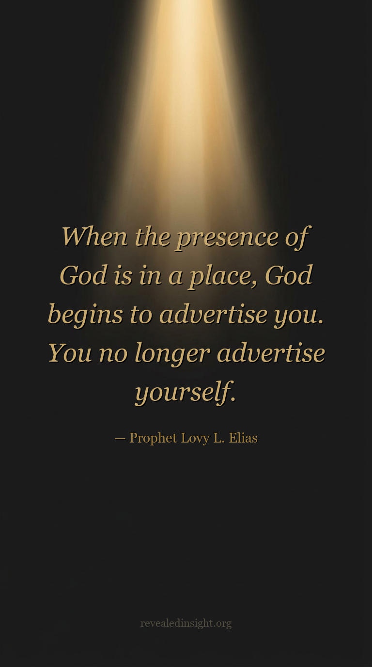 "When the presence of God is in a place, God begins to advertise you. You no longer advertise yourself."