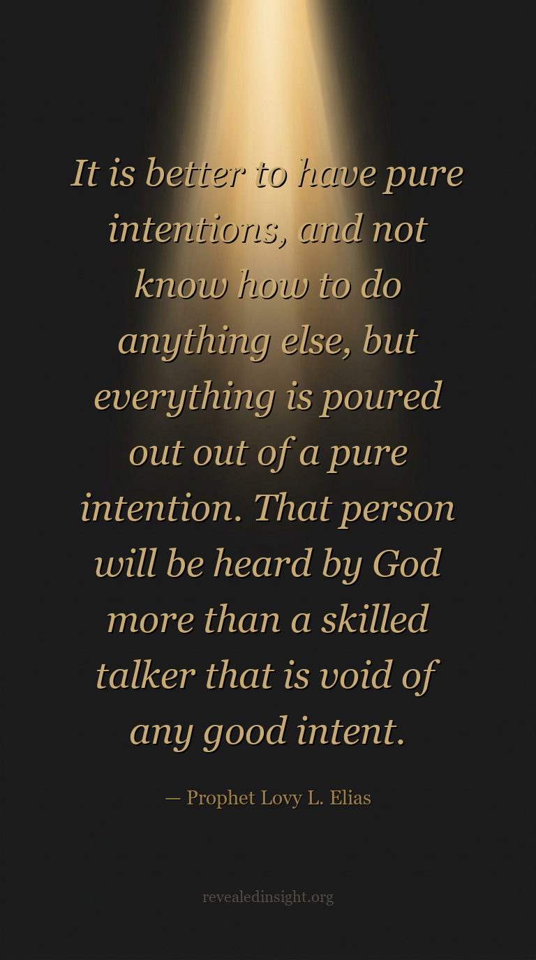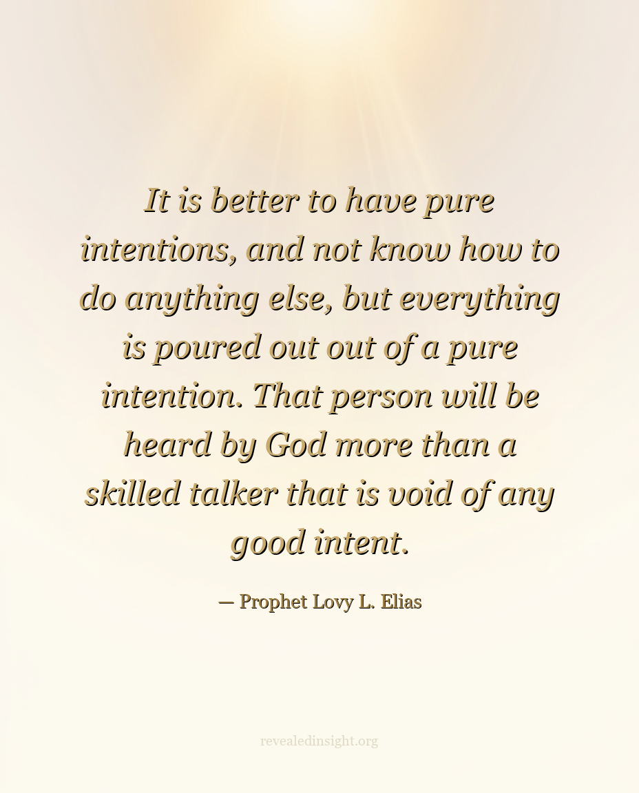 "It is better to have pure intentions, and not know how to do anything else, but everything is poured out out of a pure intention. That person will be heard by God more than a skilled talker that is void of any good intent."