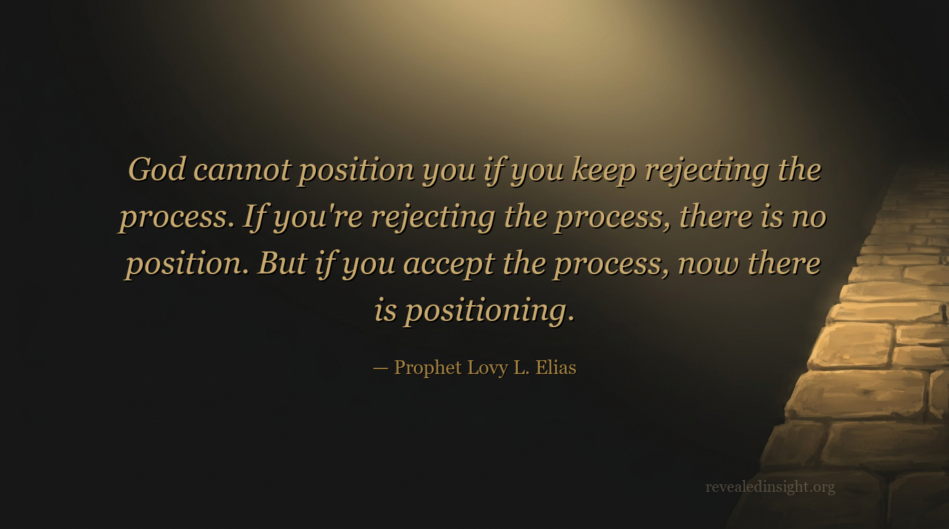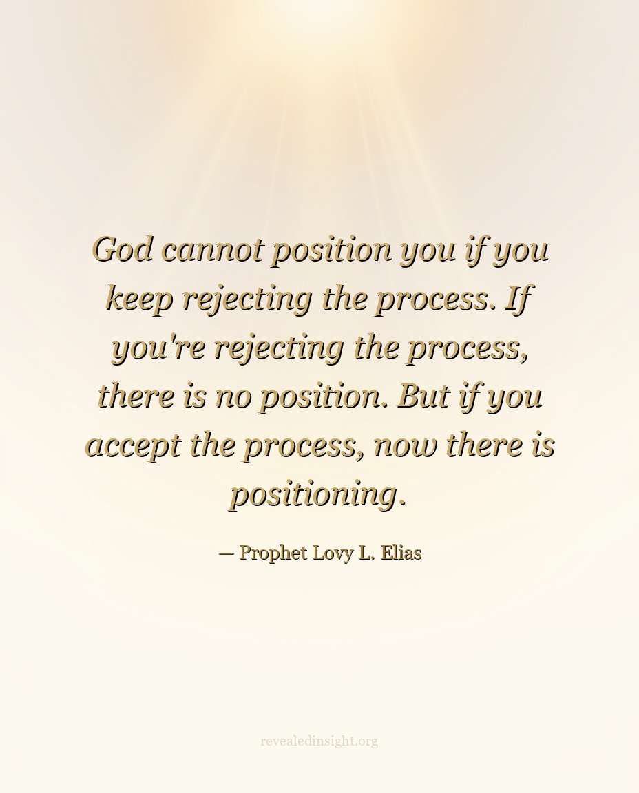 "God cannot position you if you keep rejecting the process. If you're rejecting the process, there is no position. But if you accept the process, now there is positioning."