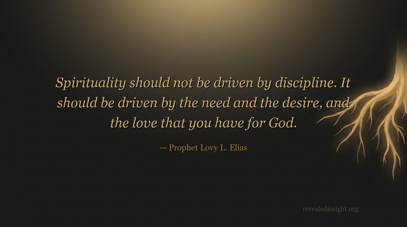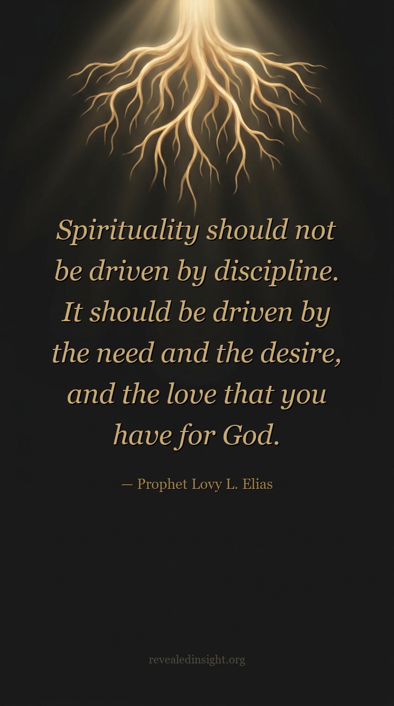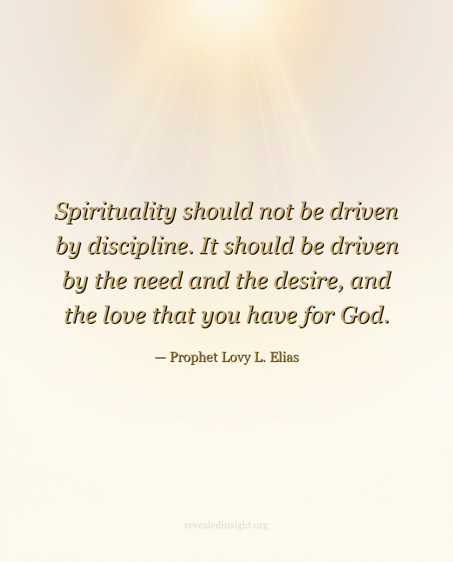 "Spirituality should not be driven by discipline. It should be driven by the need and the desire, and the love that you have for God."