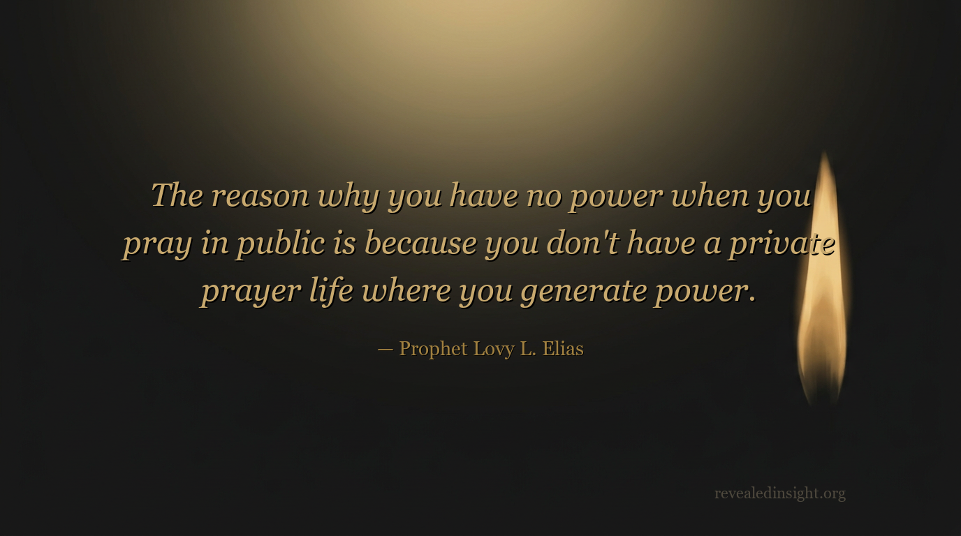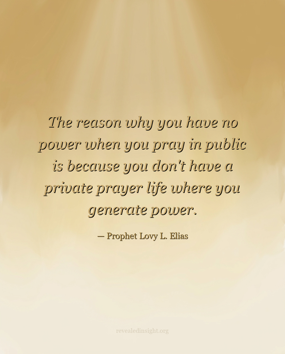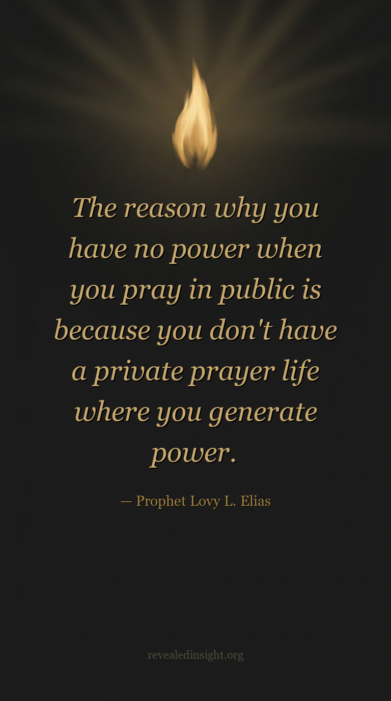 "The reason why you have no power when you pray in public is because you don't have a private prayer life where you generate power."