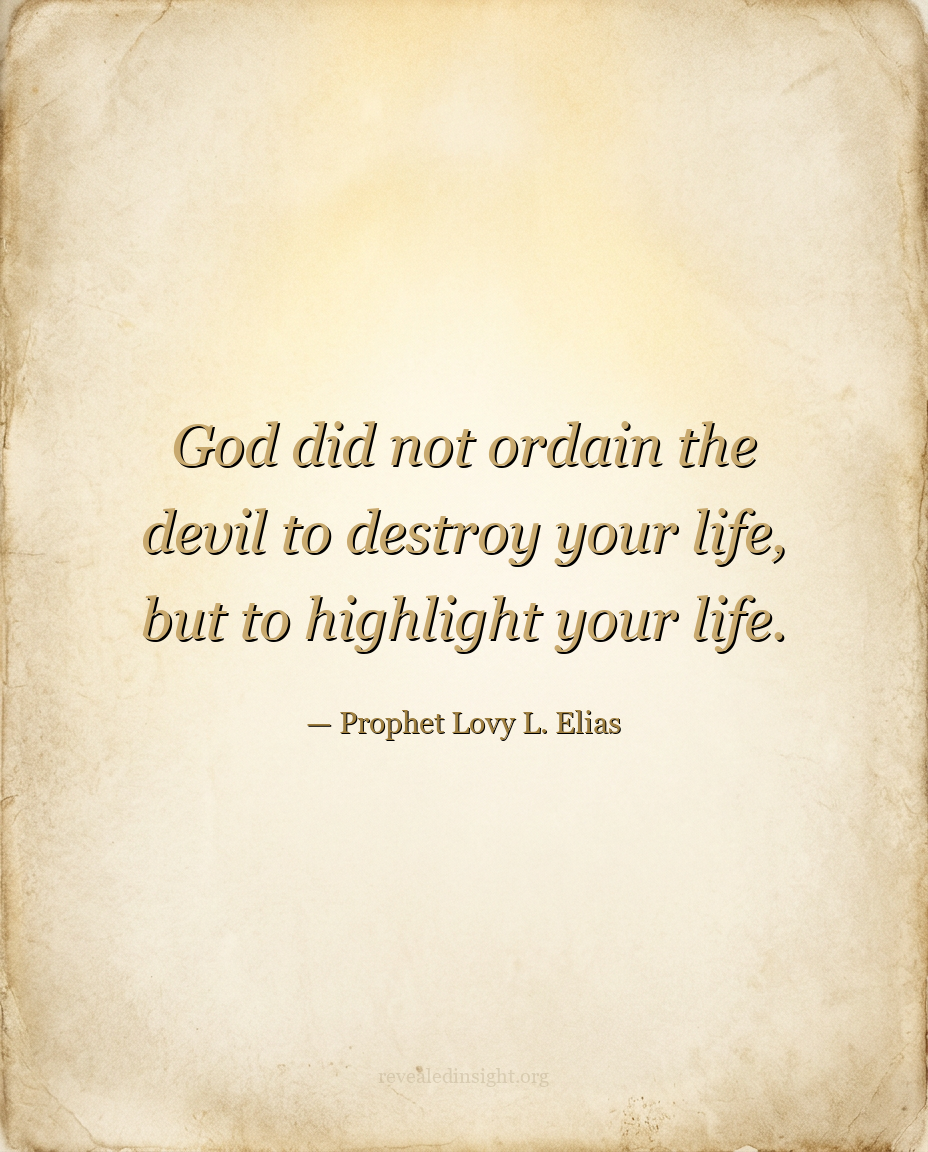 "God did not ordain the devil to destroy your life, but to highlight your life."