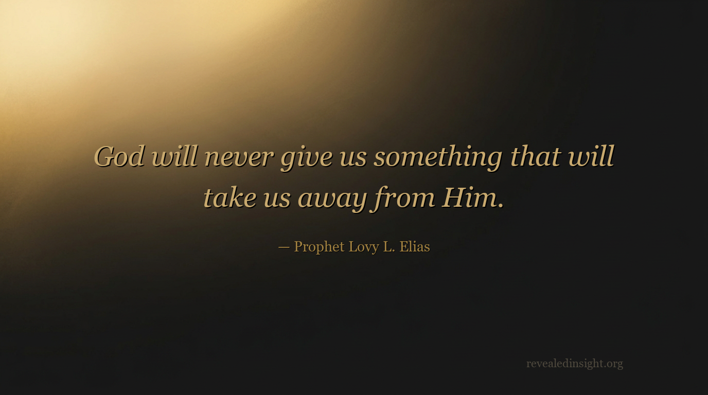 "God will never give us something that will take us away from Him. God will not facilitate the enemy to destroy us."