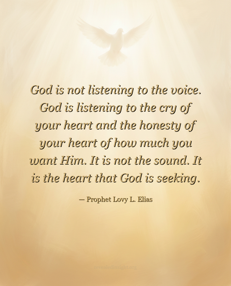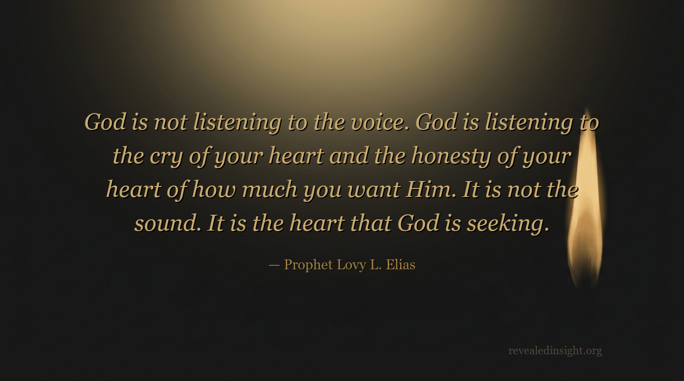"God is not listening to the voice. God is listening to the cry of your heart and the honesty of your heart of how much you want Him. It is not the sound. It is the heart that God is seeking."