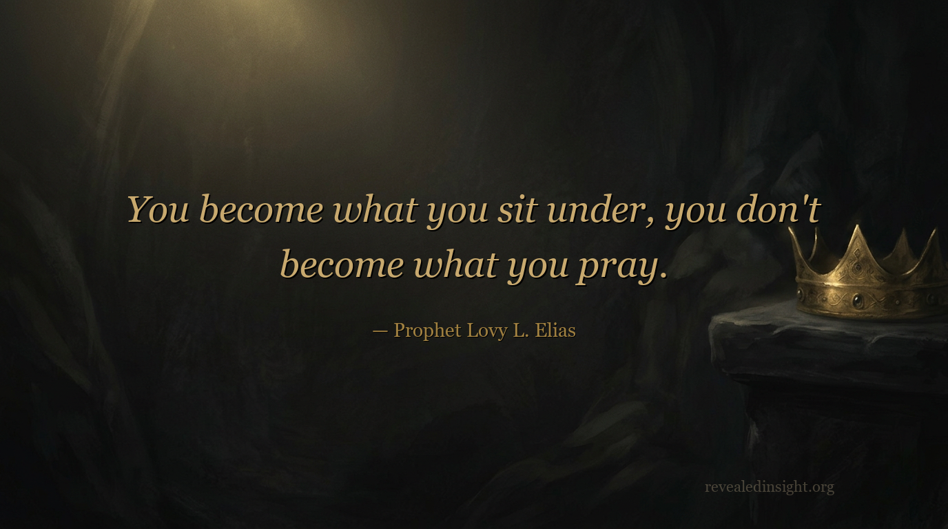 You become what you sit under, not what you pray. The person or people you choose as your spiritual mentor shapes your character, destiny, and level of blessing more than your personal prayers alone.