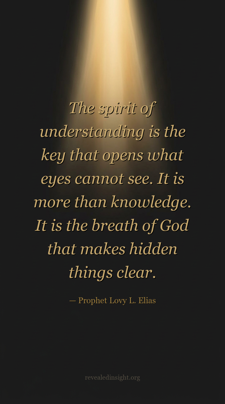 "The spirit of understanding is the key that opens what eyes cannot see. It is more than knowledge. It is the breath of God that makes hidden things clear."