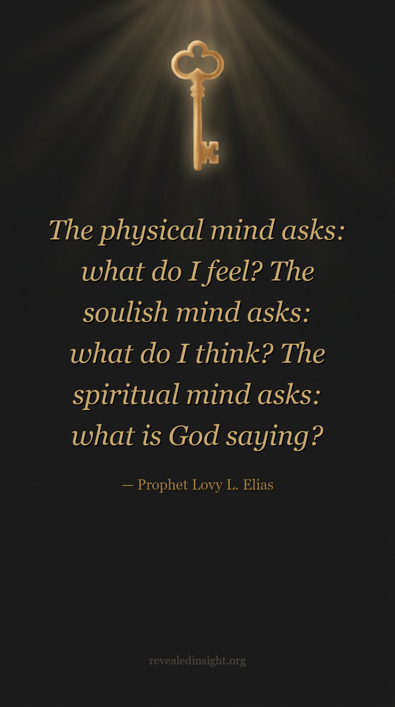 "The physical mind asks: what do I feel? The soulish mind asks: what do I think? The spiritual mind asks: what is God saying?"