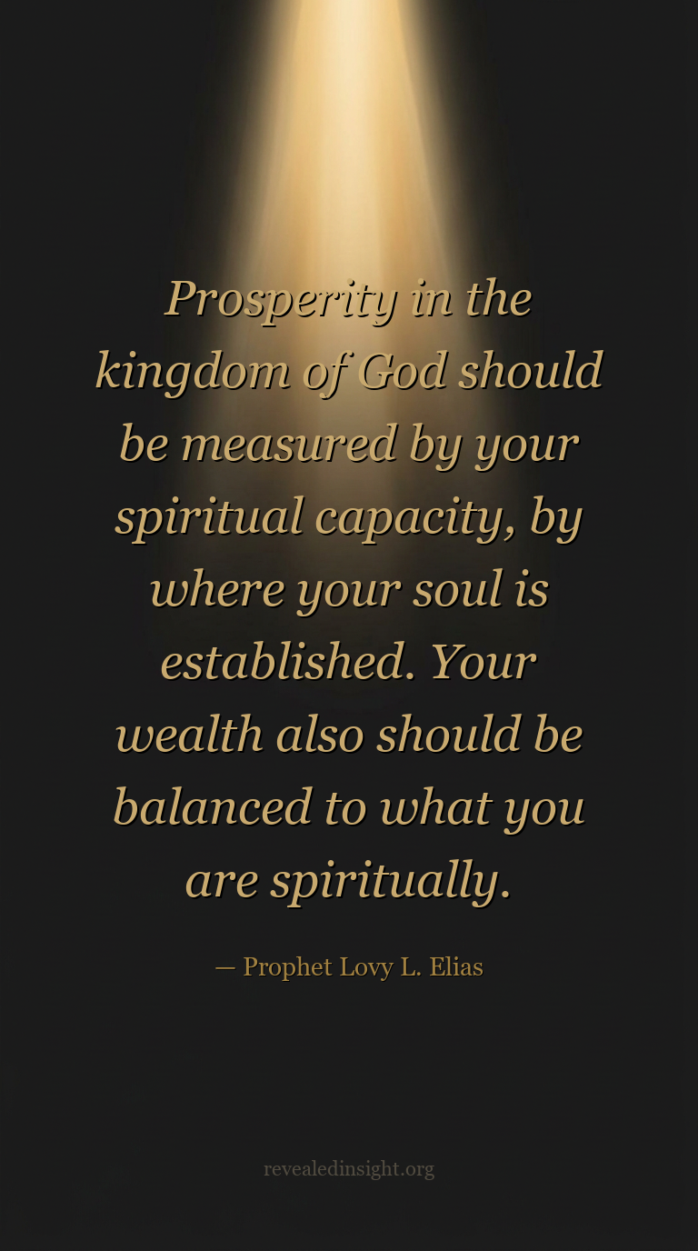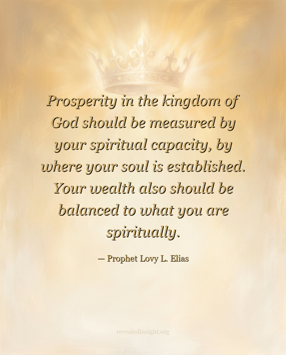 - Prosperity in the kingdom of God is measured by spiritual capacity and the maturity of the soul — not wealth alone.