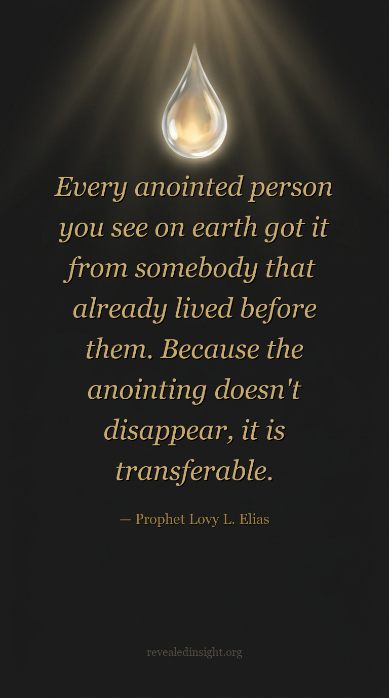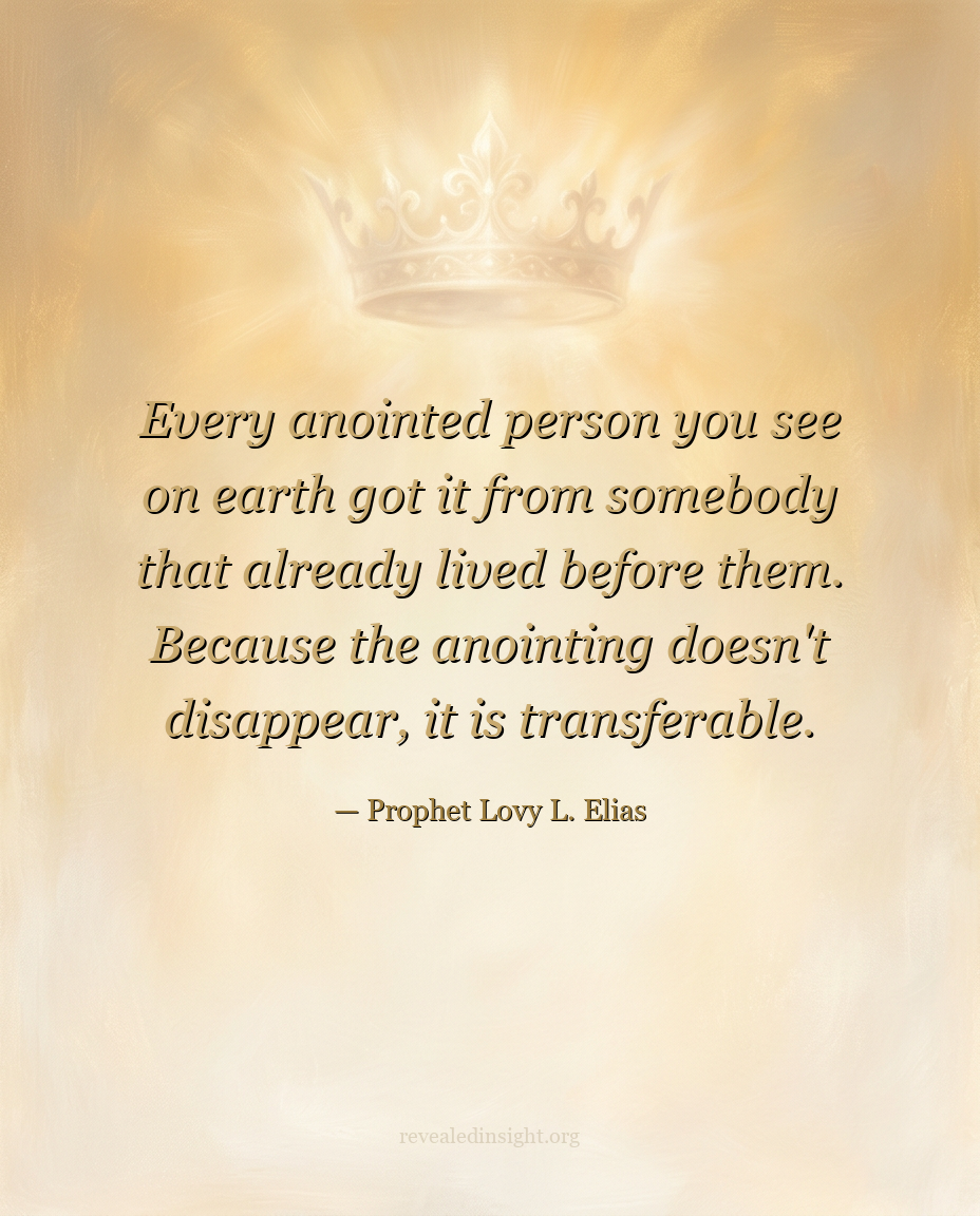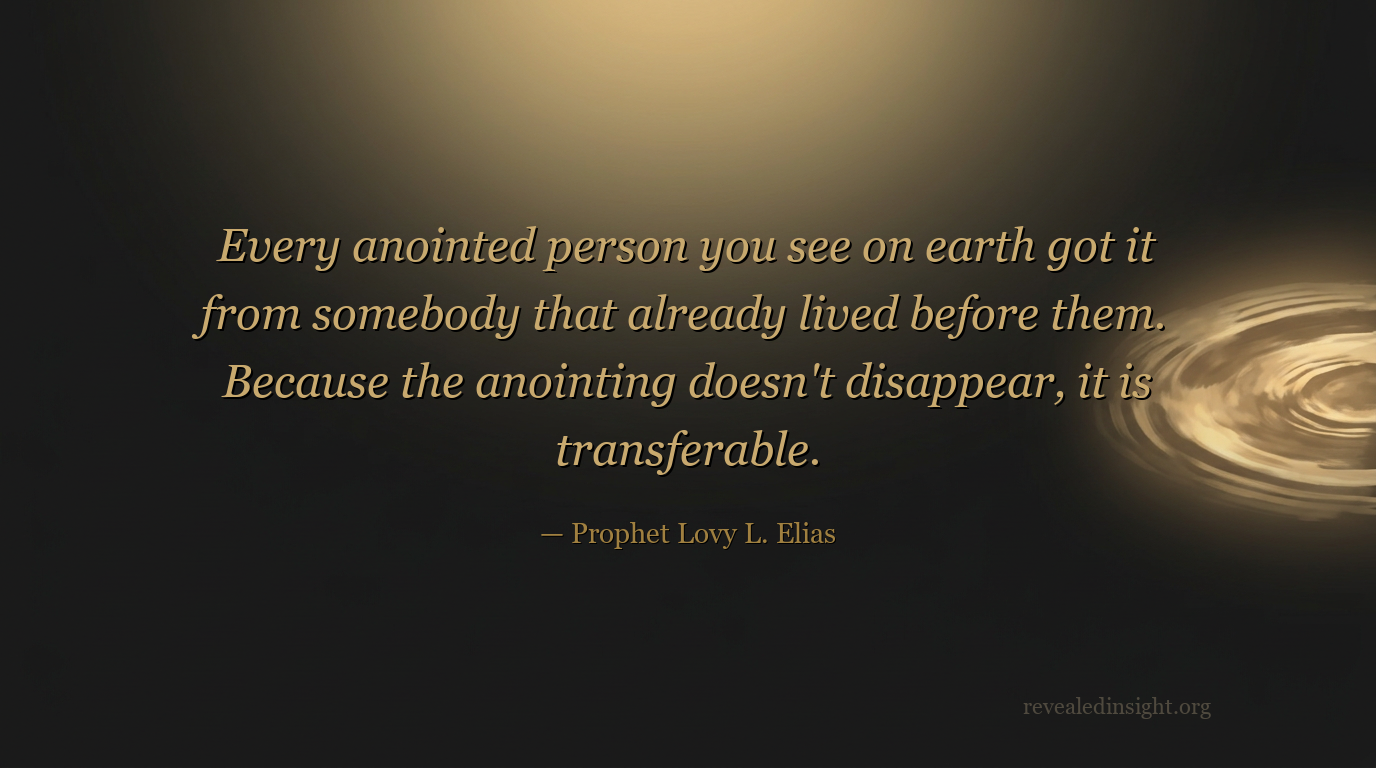 "Every anointed person you see on earth got it from somebody that already lived before them. Because the anointing doesn't disappear, it is transferable."