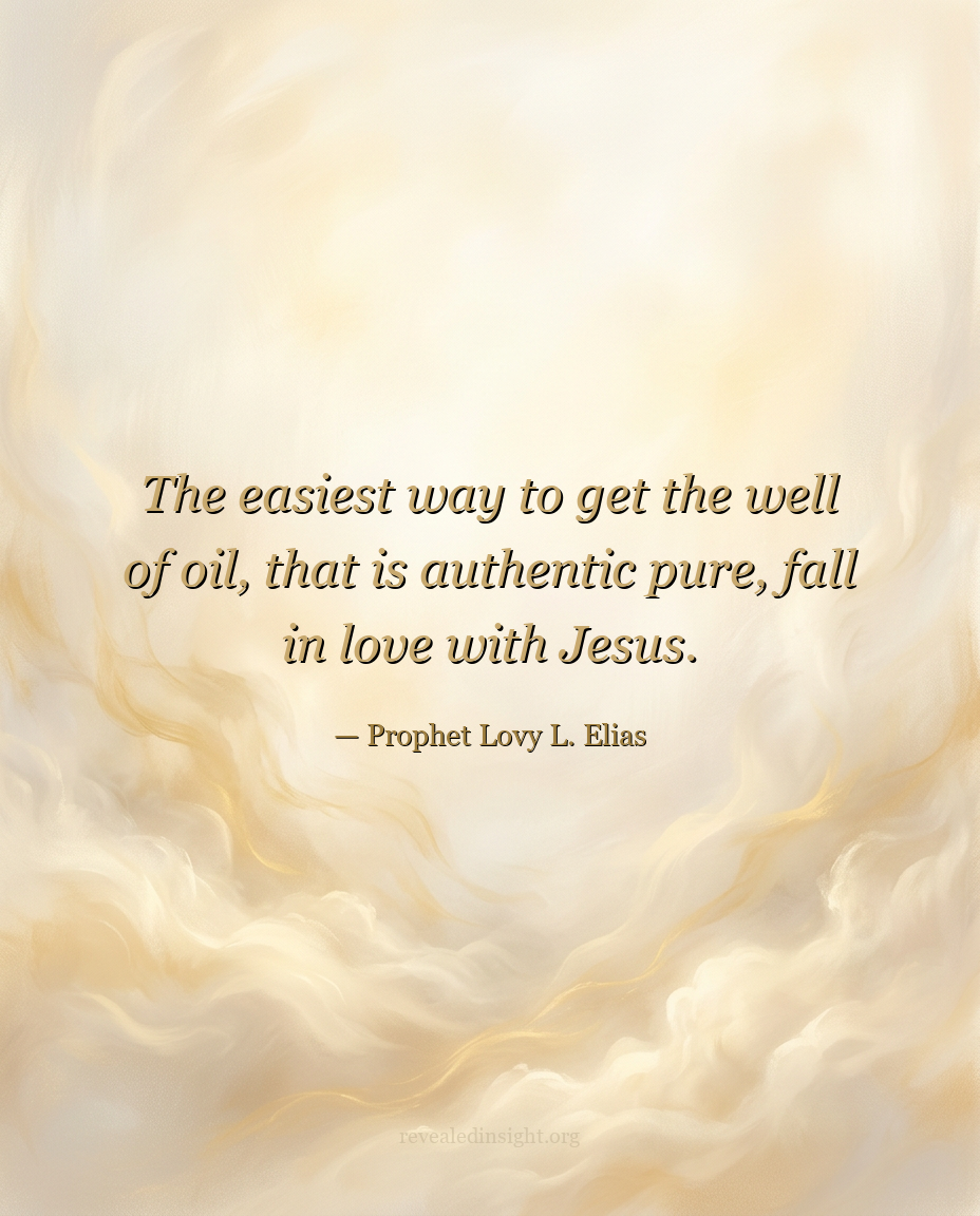 "The easiest way to get the well of oil, that is authentic pure, fall in love with Jesus."
