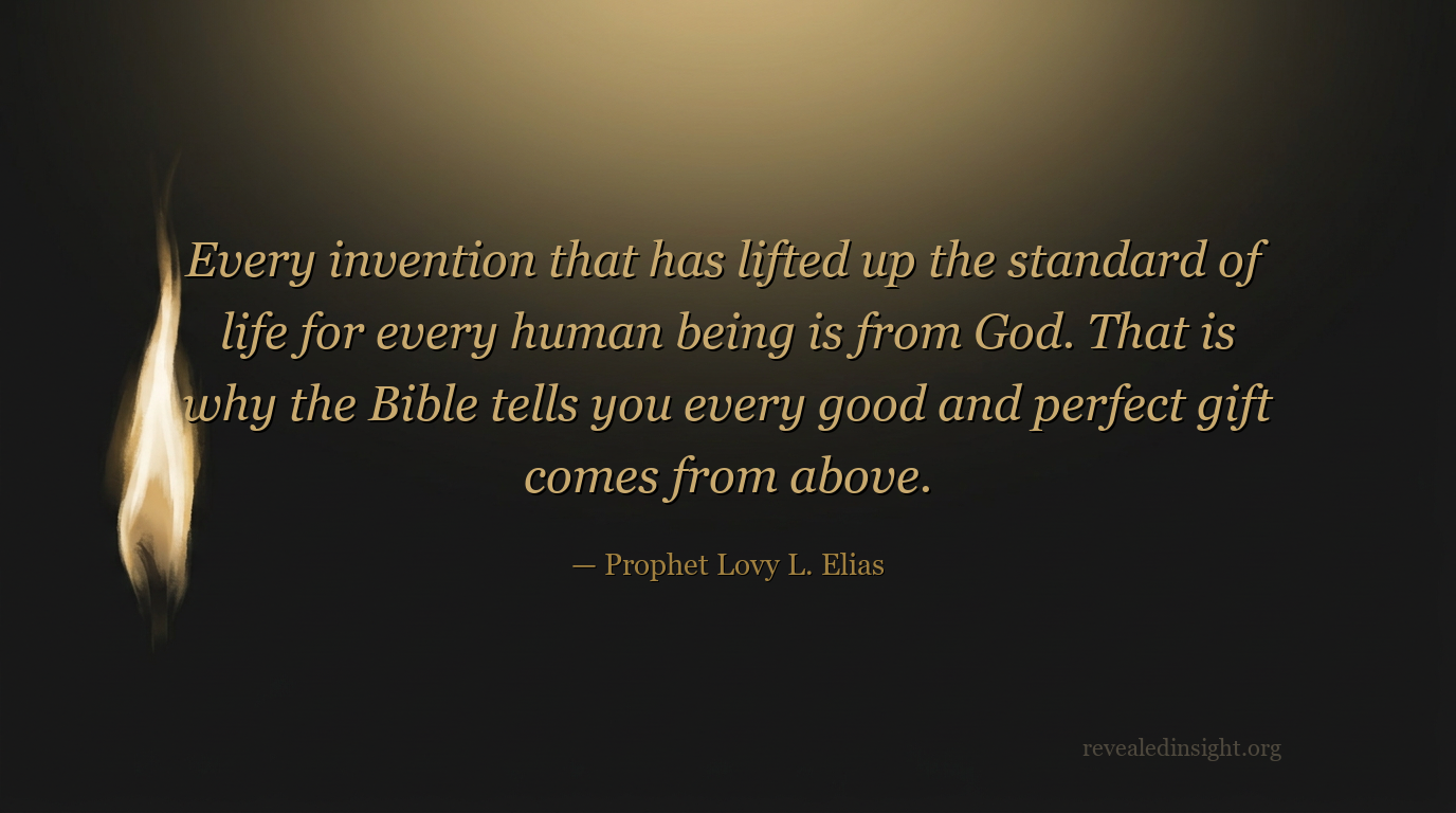 - Every invention that has lifted the standard of human life is from God — every good and perfect gift comes from above.