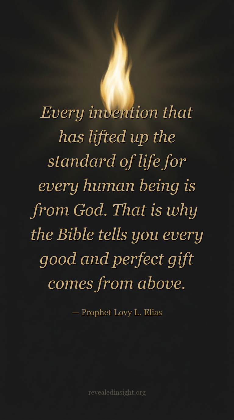 - Every good and perfect gift — including invention, medicine, and technology — comes from God — Anything that genuinely lifts the standard of human life originates with Him, even when the instrument does not know Him.