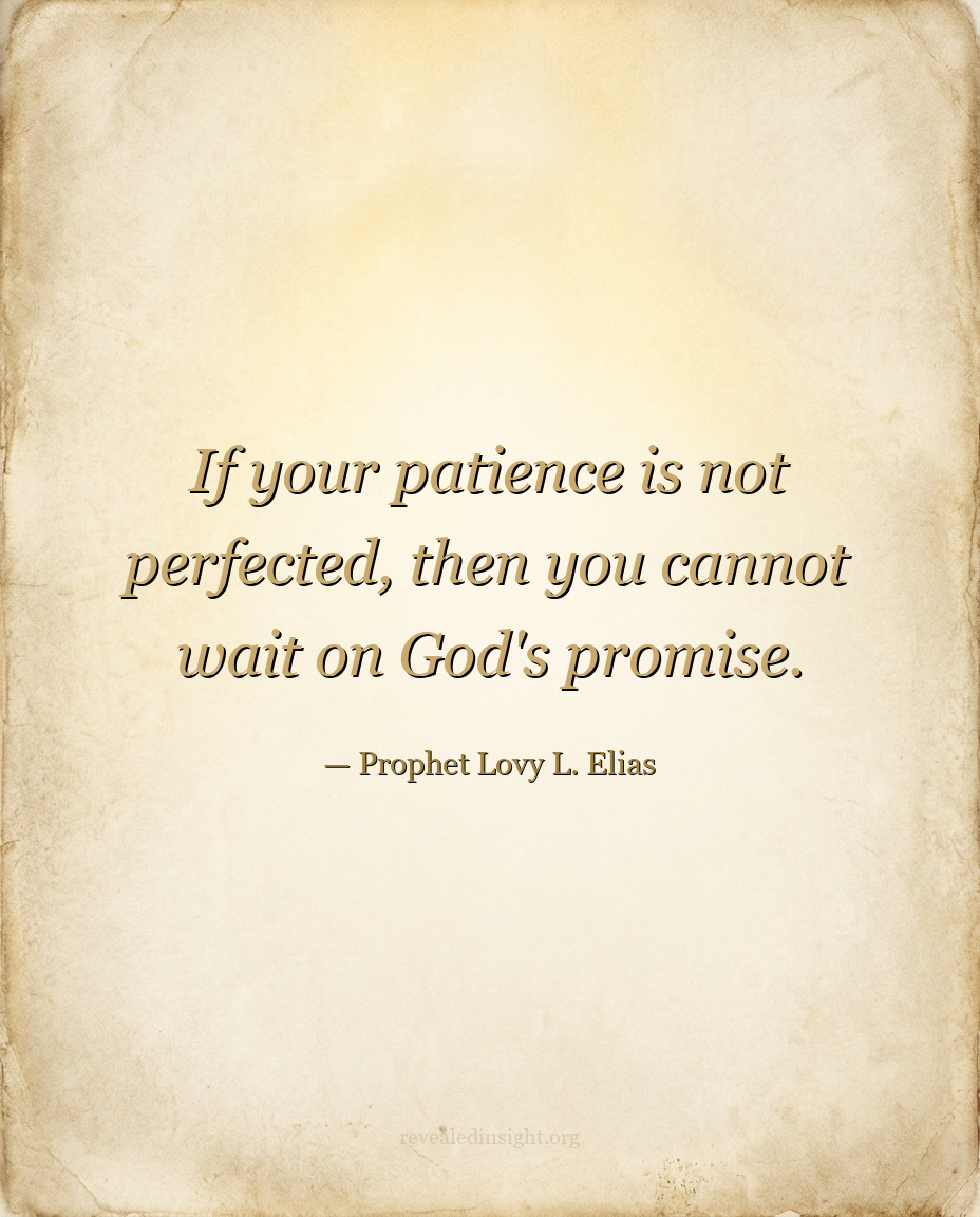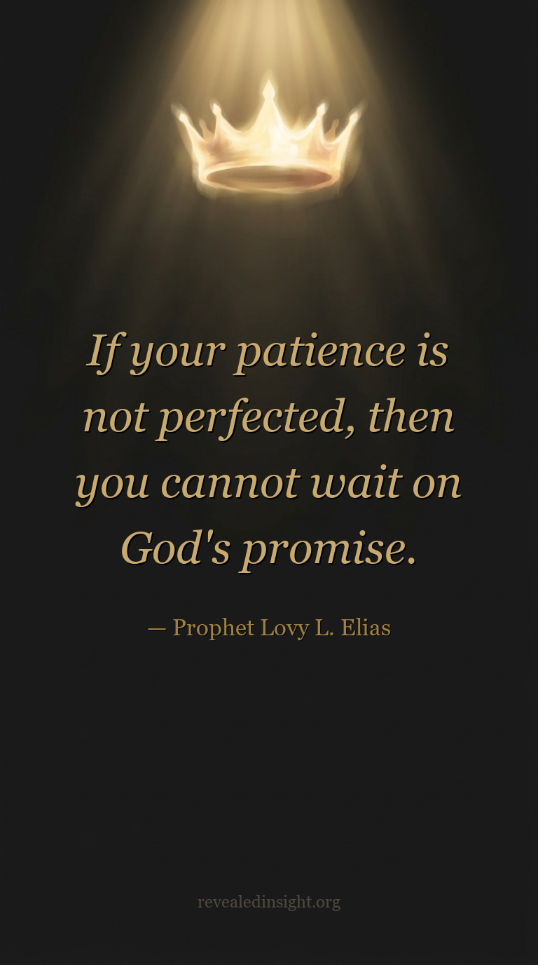"If your patience is not perfected, then you cannot wait on God's promise."
