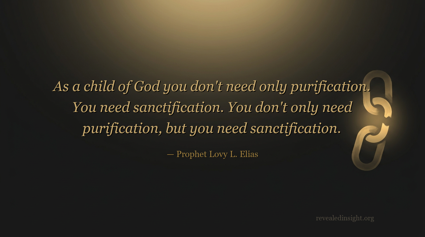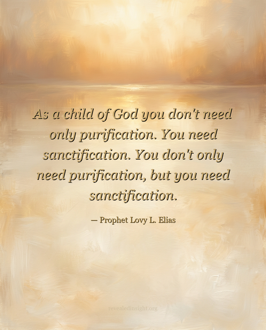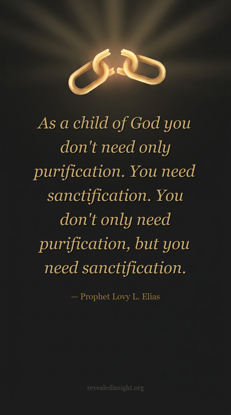 "This is why as a child of God you don't need only purification. You need sanctification. You don't only need purification, but you need sanctification."