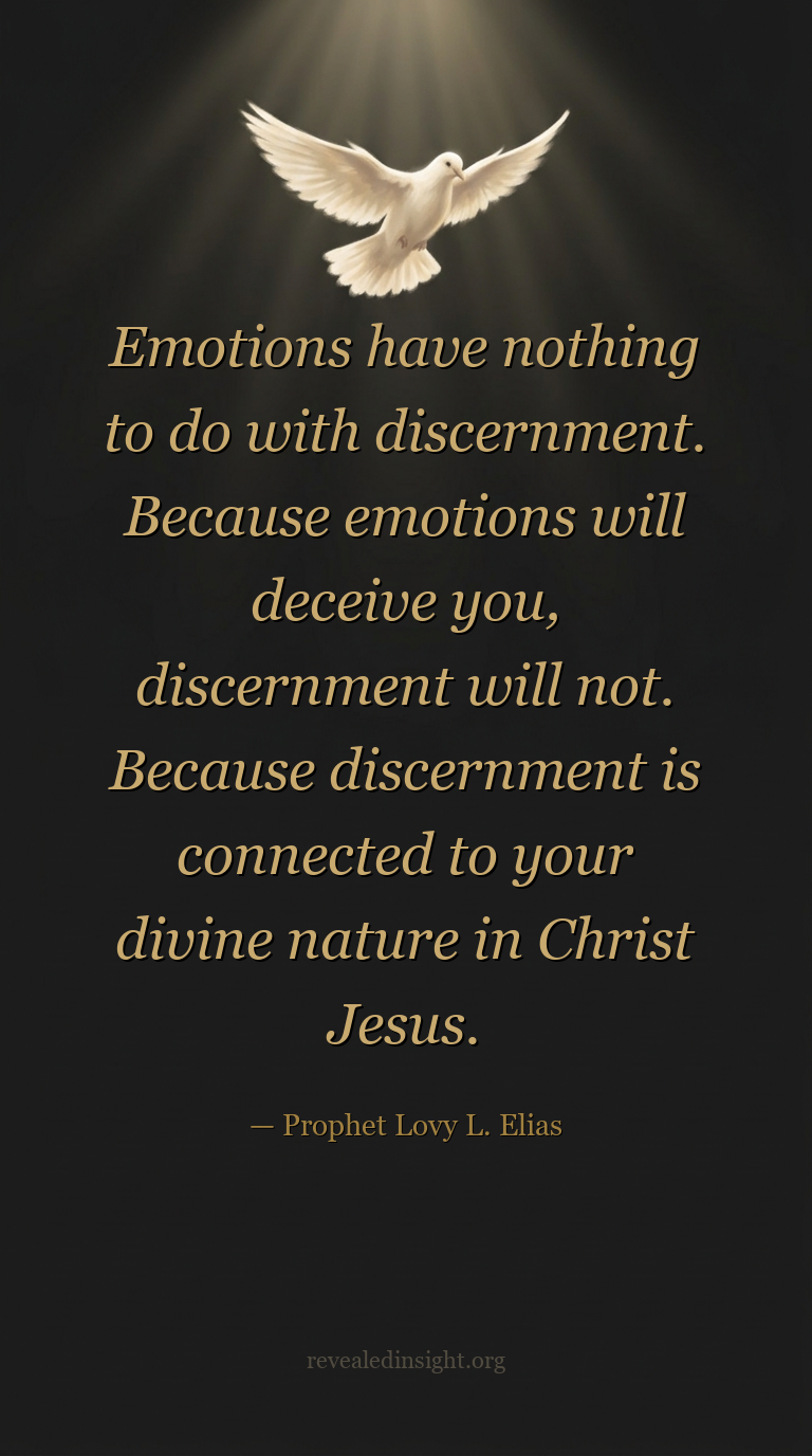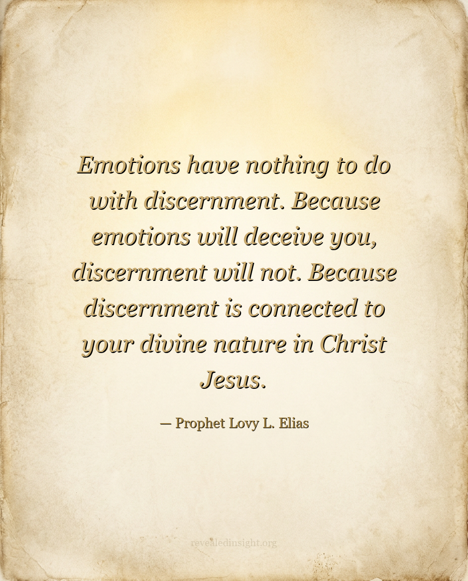 "Emotions have nothing to do with discernment. Because emotions will deceive you, discernment will not. Because discernment is connected to your divine nature in Christ Jesus."